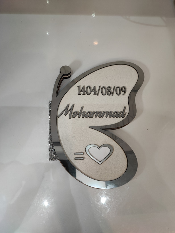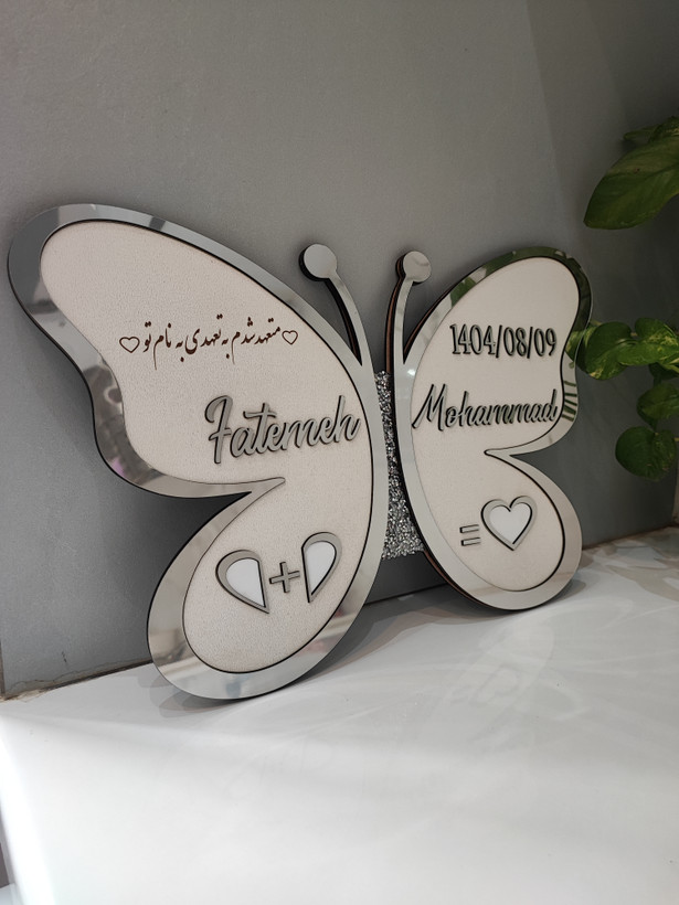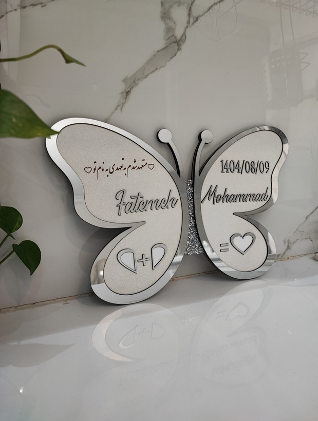 ✨استند اثر انگشت مدل پروانه ای 🦋 لوح اثر انگشت که بال های پروانه قابلیت باز و بسته شدن داره که از این نظر خاص و متفاوت هست نسبت به سایر استند های اثر انگشت هر چهار طرف استند پشت روی آن قابلیت حک متن و هر نوشته دلخواهی که شما بخوایید را درصورت امکان قابل اجراست 🥰😇